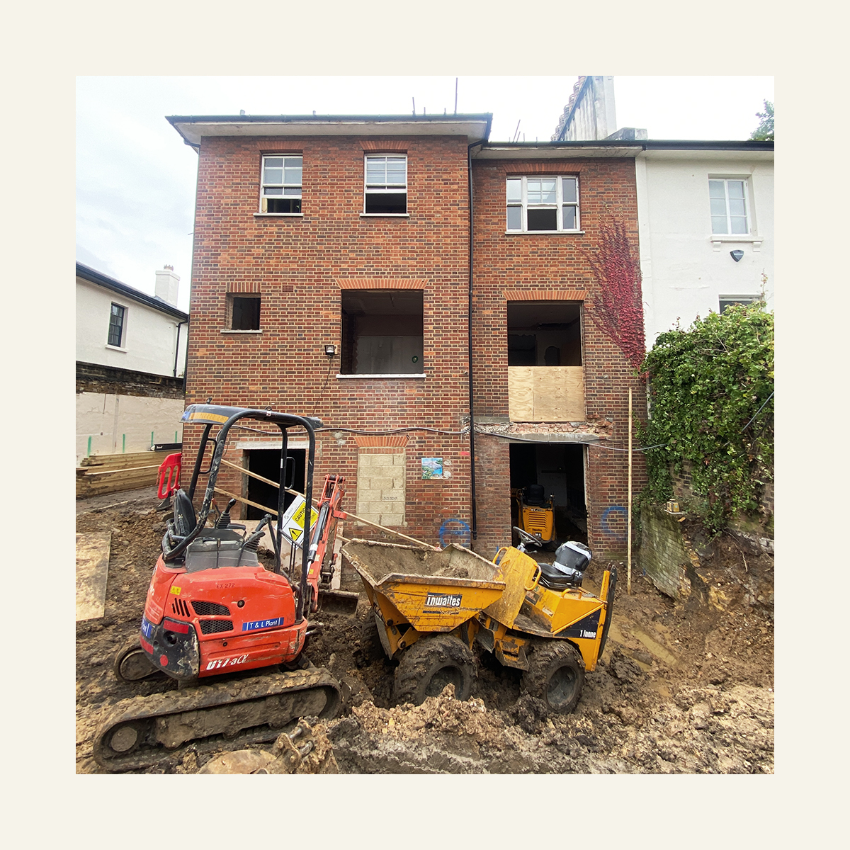 The contractor has recently been undertaking the extensive underpinning to accommodate the lowered depth of the lower ground floor slab, whilst installing the steel superstructure to support the internal alterations.