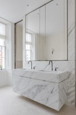 MWA were approached to undertake the extensive renovation to the main house and mews building, through the consolidation of the layout and sensitive restoration of original historic features. The addition of a contemporary two storey extension, housing a study and kitchen/breakfast room was added to the rear of the property, offering views across the garden to the mews house. The new glazed rear extension was designed to enhance and reveal the historical features and appearance of the existing property. The existing closet wing has been extended to provide a powder room and bar, whilst the lower ground floor layout has been reimagined to include a gym, spa and wine cellar. The renovation also includes sensitive internal alterations to accommodate a new study, gym, kitchen and breakfast area and went on to be featured in the PrimeResi Journal.