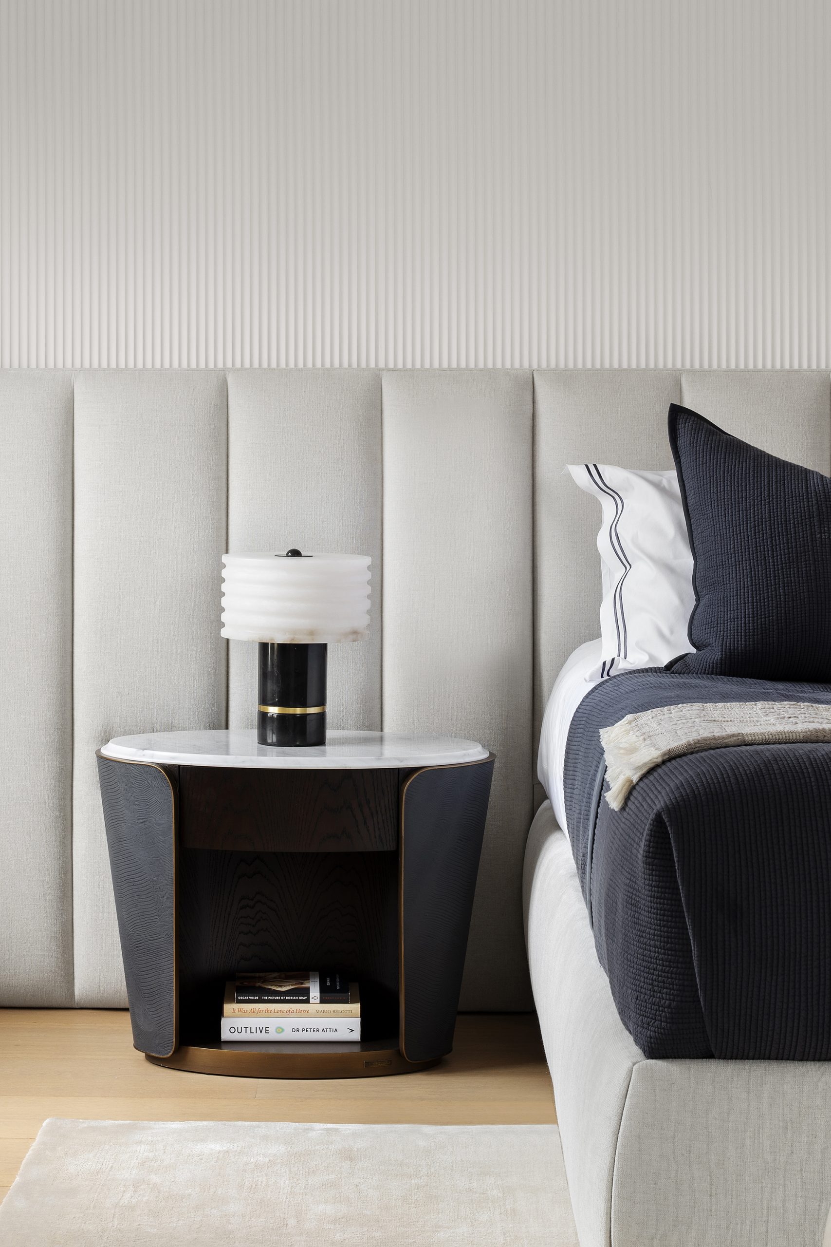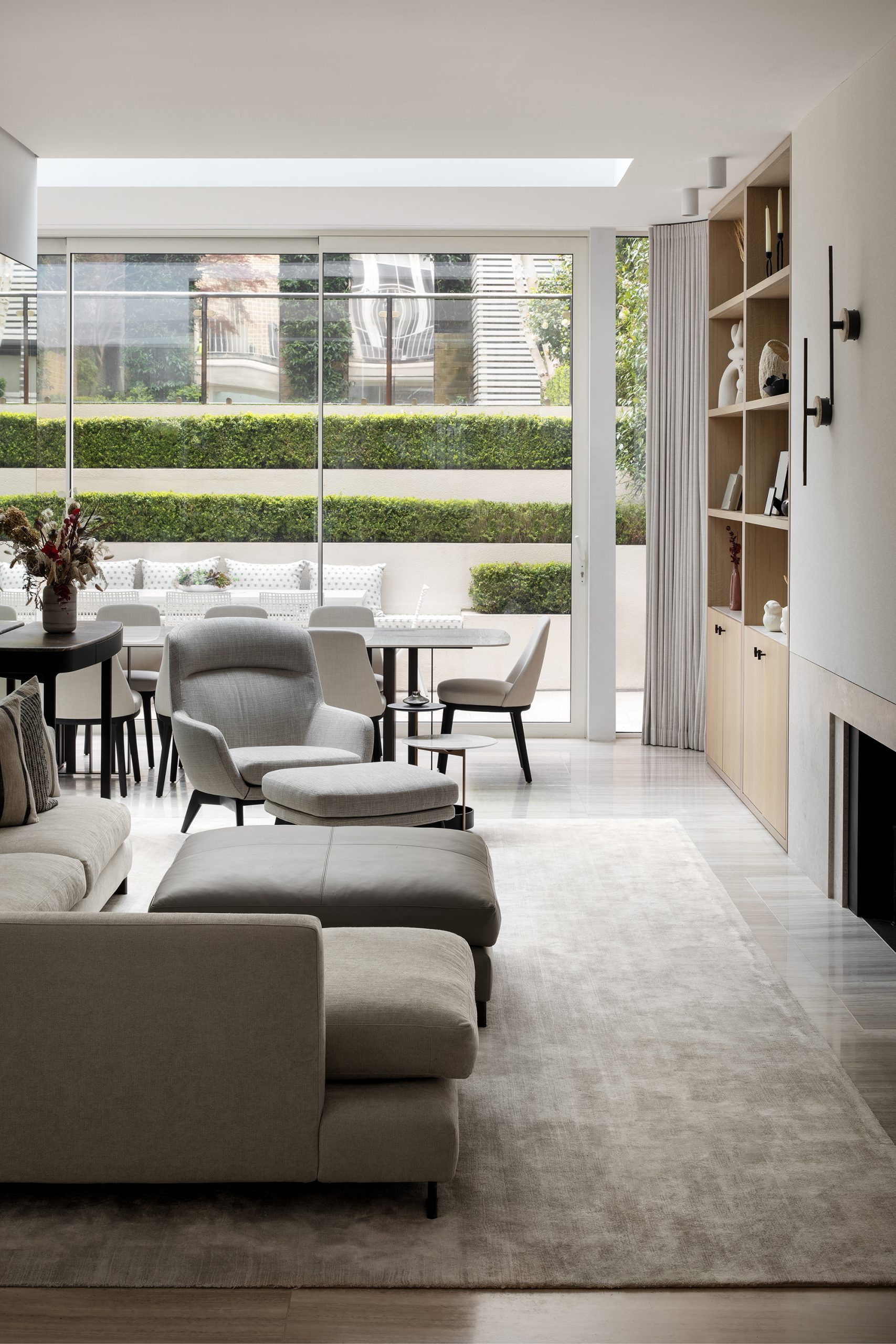 The MWA Interiors team introduced a selection of natural materials, including warm timber, soft textiles, and stone accents, to create a cosy and inviting atmosphere. The previous design’s look and feel was refreshed to include softer, more muted tones that reflect the client’s preference for a serene environment. The material palette was carefully selected to harmonise with the architectural features of Marlborough Place without compromising its spacious interiors filled with natural light.
